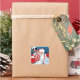 Holiday sticker shown with a cute holiday santa and snowman print. Customize or buy as is. Made to coordinate with all kinds of Christmas paper, gift wrap.