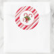 This Christmas sticker is shown with a festive holiday candy cane stripes print.