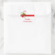 Square sticker is shown with a white color background with a festive holiday candy cane holly print.