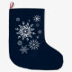 This Christmas stocking is shown in a festive winter snowflakes print.