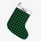 This Christmas stocking is shown in a black and green color buffalo plaid print.