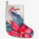 A bright Christmas Stocking designed with a large poinsettia in bold watercolor red and festive colors. To personalize with a name other than Mom, simply insert your text into our easy template, replacing the sample.