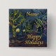 Pretty holiday button. Perfect as a holiday name tag. The watercolor painting is of a foggy, wet night on a decorated city street. The trees are entwined with pretty lights. The text reads “Happy Holidays”, and there is a customizable name field. The design features my original watercolor titled “Christmas Street”, © Sandy Long. Want this or a similar design on another item? Browse my Kayatiyu Store. Kayatiyu means to have a beautiful form.