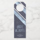 Part of a coordinating design set for Christmas, this hanging bottle tag features diagonal stripes with an outdoorsy theme in shades of sky blue, navy and white. Optional 'Happy Holidays' text and a label have been provided to add your name and/or other text. Search ID861 thru ID864 to see additional color options and other products in this modern, Christmas design set.