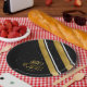 Part of a coordinating design set for Christmas, this paper plate features diagonal stripes in shades of gold, black and white. Optional 'Happy Holidays' text and a template has been provided to add your name and/or other text. Search ID861 thru ID864 to see additional color options and other products in this modern, Christmas design set.