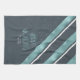 Part of a coordinating design set for Christmas, this kitchen towel features diagonal stripes in shades of watchet blue, dark teal and white. Optional 'Happy Holidays' text and a template have been provided to add your name and/or other text. Search ID861 thru ID864 to see additional color options and other products in this modern, Christmas design set.