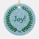 Lightweight, smooth, pure white ornament with nice sheen. Perfect size to be seen from across the room ... and to attract closer inspection! Price was great for ordering enough for the whole family! Clear, bold black design just as requested. Matches the order exactly. Just so nice!