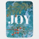 Crashing deep blue ocean waves in the background with conifers and Christmas berries framing the word "JOY". A beautiful Xmas themed coastal design ideal for Christmas in Summer or coastal Christmas celebrations.