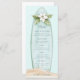 Showcase your beach reception menu with this beautiful surfboard formal dinner menu. This design has a watercolor image of a surfboard with Christmas decorations. Colors used include, slate blue, forest green, ivory and tan.