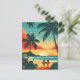 Christmas Surfers Tropical Beach Sunset Postcard