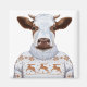 This design features a cow wearing a fun reindeer winter sweater.