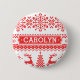 Christmas sweater red fair isle pattern monogram pinback button