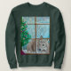 This sweatshirt features a drawing of a deer peaking through the winter window