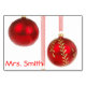 Christmas table card with red and golden decorations and customizable text.
