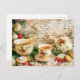 Christmas Teapot Set with Pine Green and Ornaments Postcard