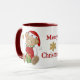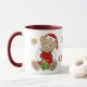 Berry Merry Christmas Teddybears. Boy and girl bears dressed in their festive holiday clothes and the boy is wearing a Santa hat. Girl teddy has a gingerbread cookie.