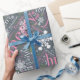 This Christmas gift wrap design features a beautiful text pattern dotted with snowflakes all in shades of rose pink, green and white on the background color of your choice. (We've chosen slate blue as an example) Some of the text includes 'Merry, Bright, Noel, Season's Greetings, Peace, Joy and Happy Holidays.' Search ID257 to see other color options and additional products with this design.