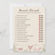 Perfect game for my daughters baby shower. The artwork on the game fit in perfectly with the shower “garden” theme !
