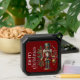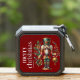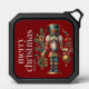 Christmas theme Nutcracker with ornament, Merry Christmas white typography, and customizable text on a red background.