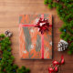 This Christmas theme wrapping paper pattern features Christmas greenery with cute white flowers with a custom orange-red background.