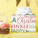 The design features colorful happy holidays typography in a seamless pattern with a custom white background.