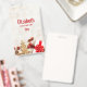 Personalized name badge with a rustic photograph. A light brown wooden board with various Christmas elements along the bottom.