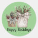 Christmas themed sticker of festive pots and plants with checkered bows.