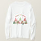 Christmas fun begins with this trio of adorable gnomes! This festive t-shirt features three cheerful gnomies sitting in the snow, surrounded by Christmas presents and twinkling lanterns. With their striped, plaid, and polka-dot hats, these cute fellows are perfect for family photos or group matching apparel. This whimsical design is an ideal Christmas gift for lovers of Nordic folk art, magical winter scenes, or anyone who wants to hang with their gnomies during the holidays.