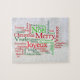 A colorful red and green word cloud of Merry Christmas greetings in many languages of the world over a background of white holiday decoration ornaments, tree branches and snow makes for a joyous expression of welcome to all. Best Christmas tidings to your and yours.
