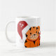 The cutest tiger decked out for the holidays in a red and white hat with little white snowflakes on it. A red bow around his neck. Add a saying if so desired.