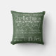 Christmas Time Chalkboard Look pillow with various styles of fonts in white on a chalkboard green background. Christmas tree lights, mittens on a string, ornaments, hearts and scrolls, and text that reads "Christmas Family & Friends laughter and smiles...sharing and caring, mistletoe & fudge, smell of pine...gifts to give, Birth of CHRIST!".