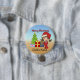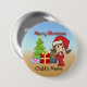 Christmas Toddler Girl Round Button features a blue & brown gradient background (customizable), a cute cartoon baby Girl in red Footed Pajamas with a red Santa hat, holding a teddy bear. There is also a decorated Christmas tree with gifts under it. Red stylized text is Merry Christmas. There is text set up for your Child's Name or any text you want. Perfect gift for Christmas stocking stuffer. To customize the background color - Delete the background image - Click the Blue "Customize It" button, - Click on the "X" next to the background image, then Click on "Edit" then "Background", choose your color and click on "Done".