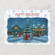 christmas town postcard snowy edge & text.