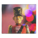 Christmas toy soldier figurine SlipperyJoe gay pride gifts LGBTQIA colorful bokeh lights background vibrant colored red jacket uniform gold buttons shoulder epaulets cartoonish face artistic black hat gold eagle emblem pink purple yellow red festive atmosphere