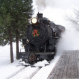 Sumpter Valley Railroad No. 19 Mikado steams past the depot platform.