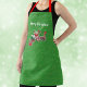 This kitchen apron is dark green with tiny gold specks and a Christmas train with Santa Claus carrying candy canes and letters to Santa with peppermint candy wheels. Customise your text with the template.