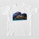 All aboard the Christmas train. Enjoy this bright and shiny locomotive, decorated with holiday lights, rolling down the railroad tracks. Available on t-shirts, Christmas cards, gifts and more.