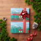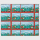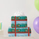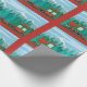 Cartoon Christmas Train Wrapping Paper in red, green, and sky blue.