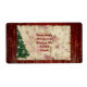 A beautiful shipping label with a Christmas tree and a starry theme with your name and address in red