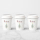 Cute Believe Christmas tree party paper cup, with a festive red and green holiday tree and a red typography design. With customizable lettering, you can add your own text. A festive way to enjoy a cup of hot cocoa this holiday season.
