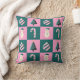Christmas tree candy cane bauble snowman pink cyan throw pillow