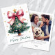 Christmas Tree Coquette Bow Photo Holiday Card