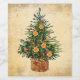 Simple country farmhouse traditional Christmas tree with rustic dried oranges and fruit decorations. Faux distressed background. Perfect for all your holiday party bottles, wine, water, beer, liquor, etc.
