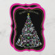 Christmas Tree Decorated Double-Sided, Black/Pink Invitation