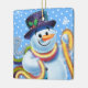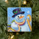 Square Christmas tree decoration Snowman and tinsel. Blues.
