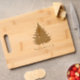 A beautiful wooden cutting board, ready for chopping or charcuterie with an image and household name etched in the wood permanently.