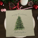 A festively dressed decorated traditional Christmas tree on this sage green cloth napkin