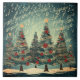 Decorated Christmas Trees with musical notes, ornaments and golden stars--festive holiday design.