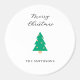 This product, a roll of round, personalized gift labels featuring a simple Christmas tree design with a script "Merry Christmas" and a family name, falls under the Seasonal/Holiday art theme, specifically Christmas and Personalized Stationery/Gifting. Popular search terms for this item would include: "custom Christmas stickers roll", "personalized holiday labels", "family Christmas gift tags", "circular Merry Christmas stickers", and "Christmas tree envelope seals." The minimal, slightly modern design also suggests themes like "Simple Christmas" or "Minimalist Holiday."