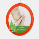 This cute holiday ornament makes a great keepsake for your family. It features a red border and two Christmas Tree. Also a photo, name and year on the back side. This colorful and modern ornament will add a special customized touch to your family Christmas Tree.